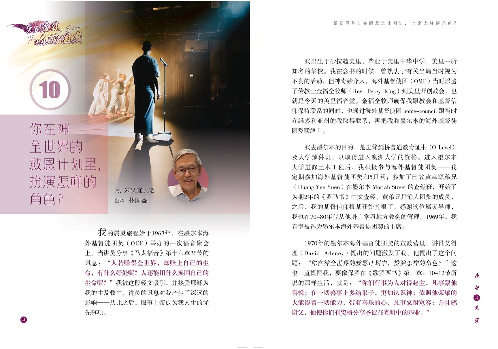 有些人面对内心的风暴,也有些人走进世界的角落,回应神国的需要。在邻舍的需要中,看见神的心意。在《人在蓝图,只因上好国度》里,我们看见他们用生命书写行动的见证,这些故事也在等待更多同行的人,您也可以成为其中一份子……