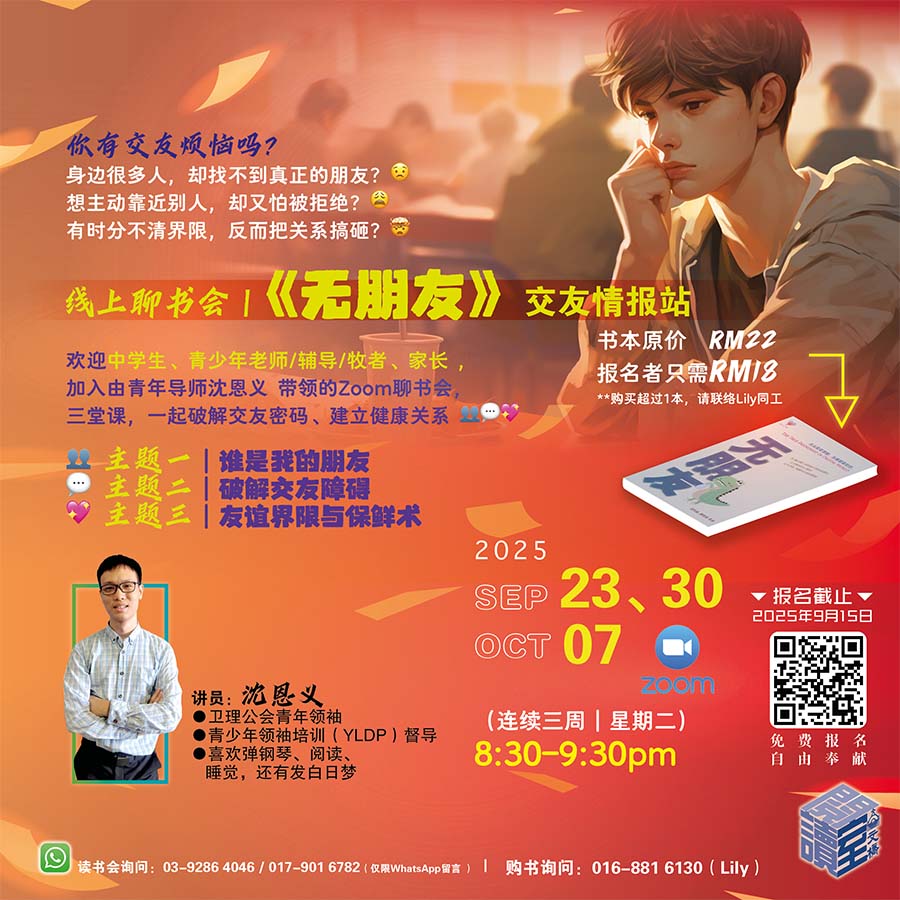 加入由青年导师沈恩义带领的Zoom聊书会(导读+讨论+情景示范),