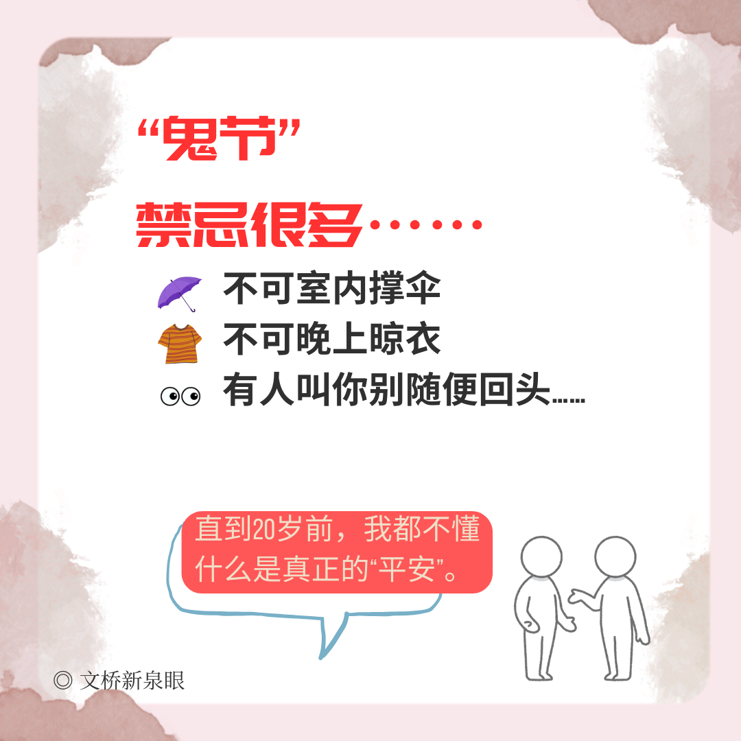听到这句熟悉的叨念——是的,我知道农历七月又到了。这是我们一家信主前,都很在意的事。鬼节的各种禁忌:不可室内撑伞、不可晚上晾衣、有人叫你不要随便回头……总在半信半疑,疑神疑鬼,战战兢兢间,平平安安又度过人生第X个七月。