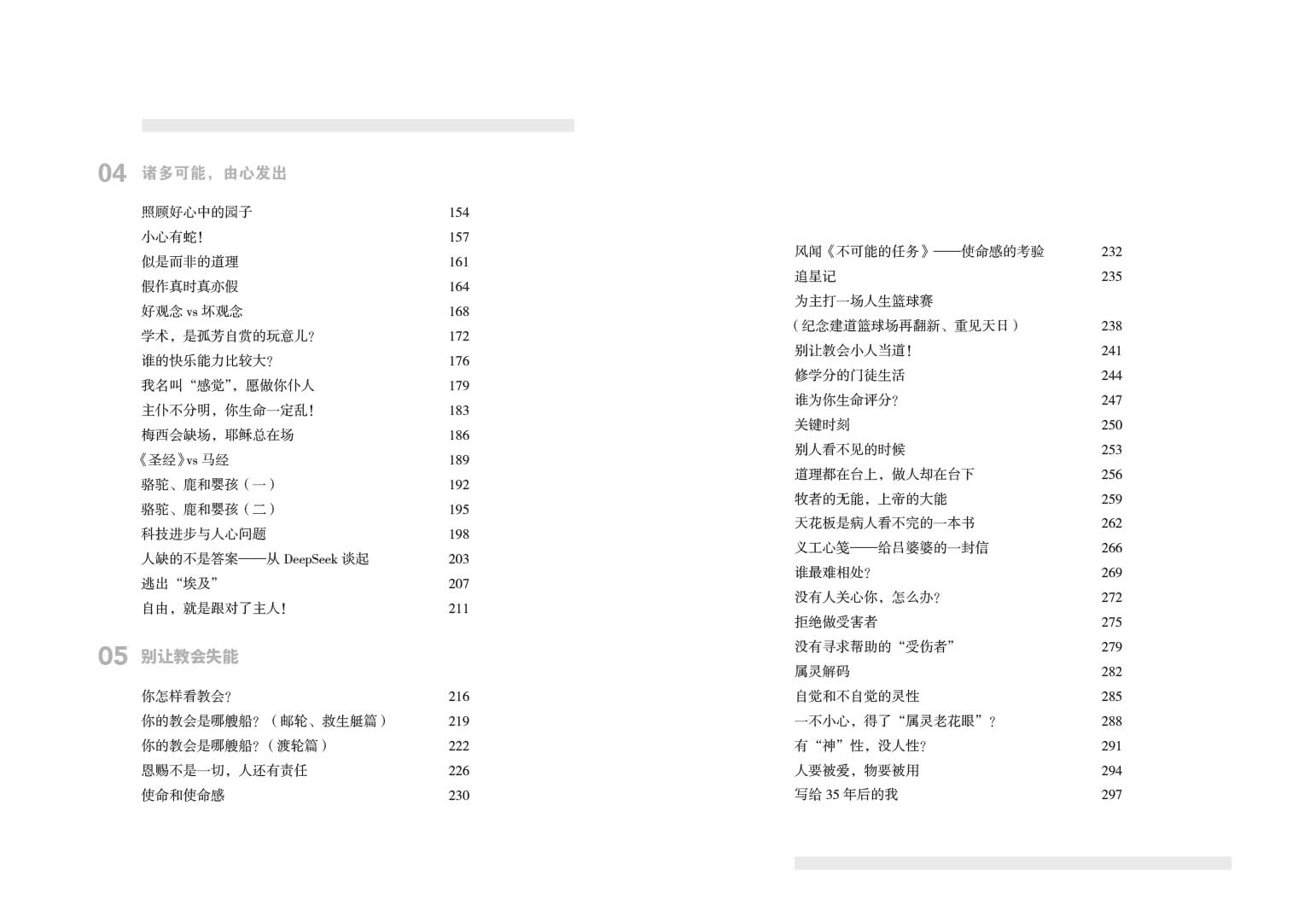本书篇幅精简,不追求深奥学术,旨在帮助读者以信仰的眼光看待日常生活的诸多课题。每篇附反思问题,帮助读者:停下、思考、确认目标、真正成长。