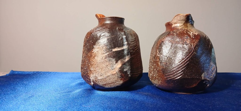 那天,先生从窑里端出了那两个陶瓷酒器。端在掌上,却是叫人眼前一亮。坯上的线条肌理,仿佛有趣的天文现象在运转。
