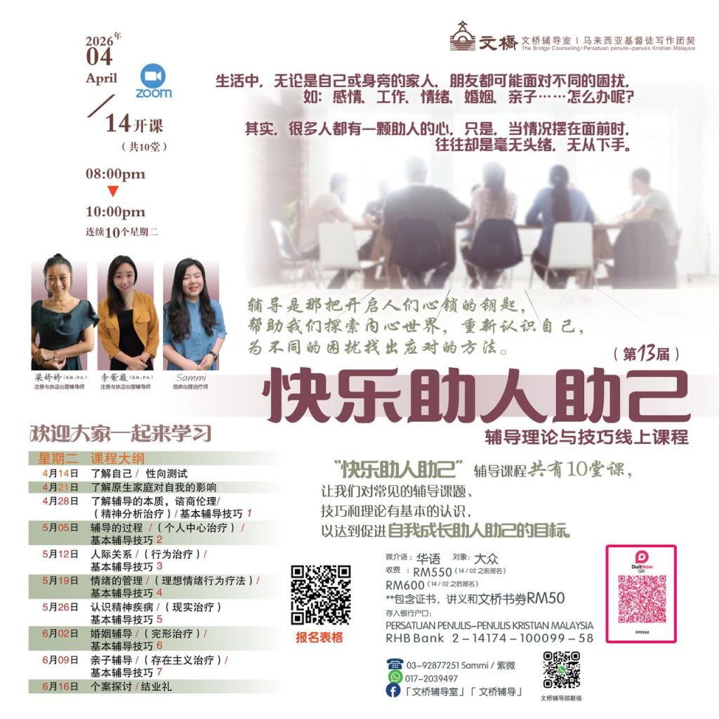 别再让陪伴“有心无力”——第13届快乐助人助己辅导理论与技巧线上课程(03.03.2026)