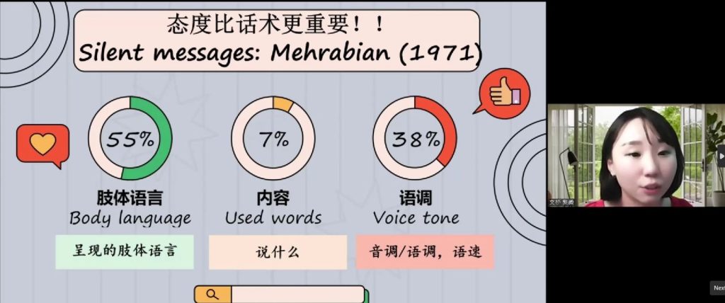 课程内容之一:态度与话术。讲员:李紫微(注册与执证心理辅导师)