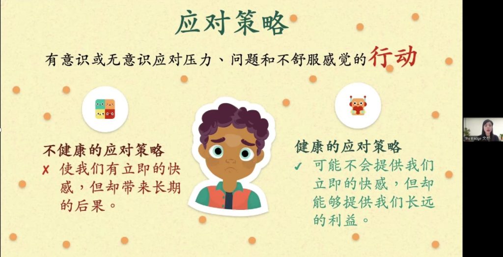 课程内容之一:健康与不健康的应对策略。讲员:Sammi(临床心理治疗师)