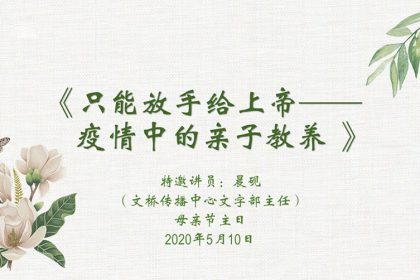 一场疫情,让世界改变了生活形态,但神的爱没有改变,我们身为母亲的身份也没有改变… 内文